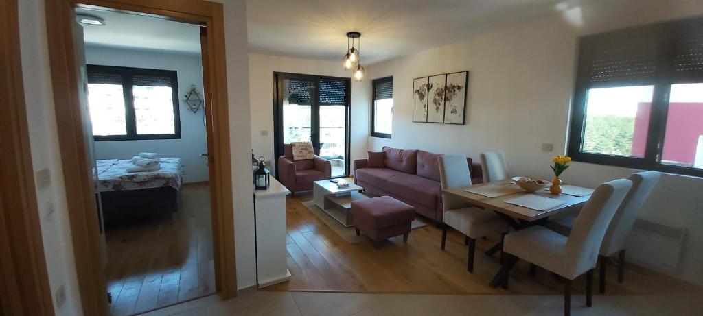 Dobro došli u Apartman MYSTIC na Zlatiboru. Nalazi u novoj zgradi Matis, na svega 400m od Kraljevog trga. Apartman je kapaciteta do četiri osobe. Poseduje terasu sa pogledom na planinu. Sastoji se od dnevne sobe sa terasom, potpuno opremljene kuhinje sa trpezarijom, odvojene spavaće sobe sa francuskim ležajem. Kupatilo sa tušem je opremljeno peškirima i fenom. Na zahtev su dostupni krevetac za bebu i hranilica.